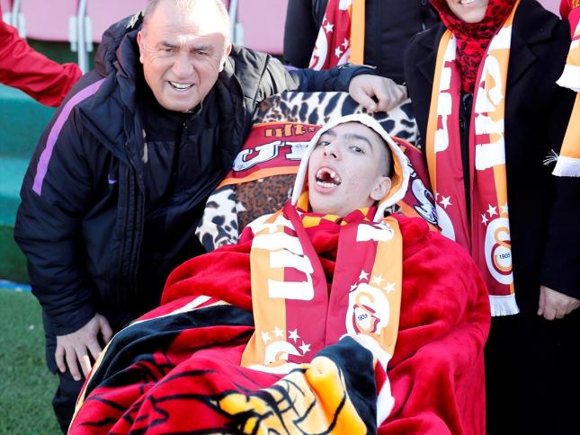 Spor Galatasaraylı engelli gencin hayali gerçek oldu Hastalığı nedeniyle yatağa bağımlı olarak yaşayan sarı-kırmızılı takım hayranı Kocaelili Velican Öndeş, Galatasaray antrenmanını izleyip, Fatih Terim ve Muslera ile bir araya geldi